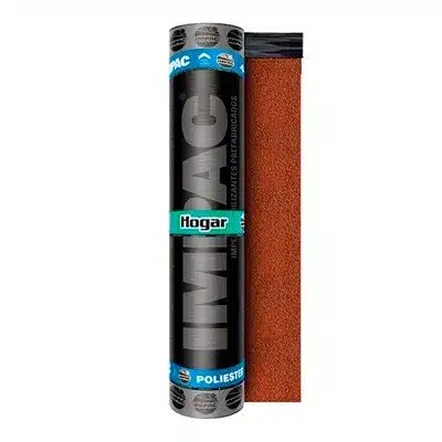 Membrana prefabricada Impac Hogar, forma un sistema impermeable de gran durabilidad para proporcionar protección contra la humedad en estructuras con movimientos térmico-estructurales no críticos, expuestos a cualquier tipo de clima y al tráfico ligero ocasional. Fabricada con asfalto sólido no oxidado modificado con SBS y armada con refuerzo central de tela poliéster no tejida de hilo continuo, que fue confeccionada bajo proceso Spunbond laminado, con acabado de gravilla en color rojo terracota. Además, cuenta con una capa inferior de una película de polietileno que se integra al asfalto por medio del soplete por termo-fusión, adhiriéndose de manera eficaz y uniforme a la superficie previamente tratada. Posee las medidas de 1 x 10 m y un espesor de 4 mm.